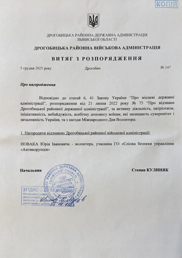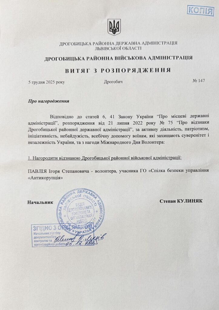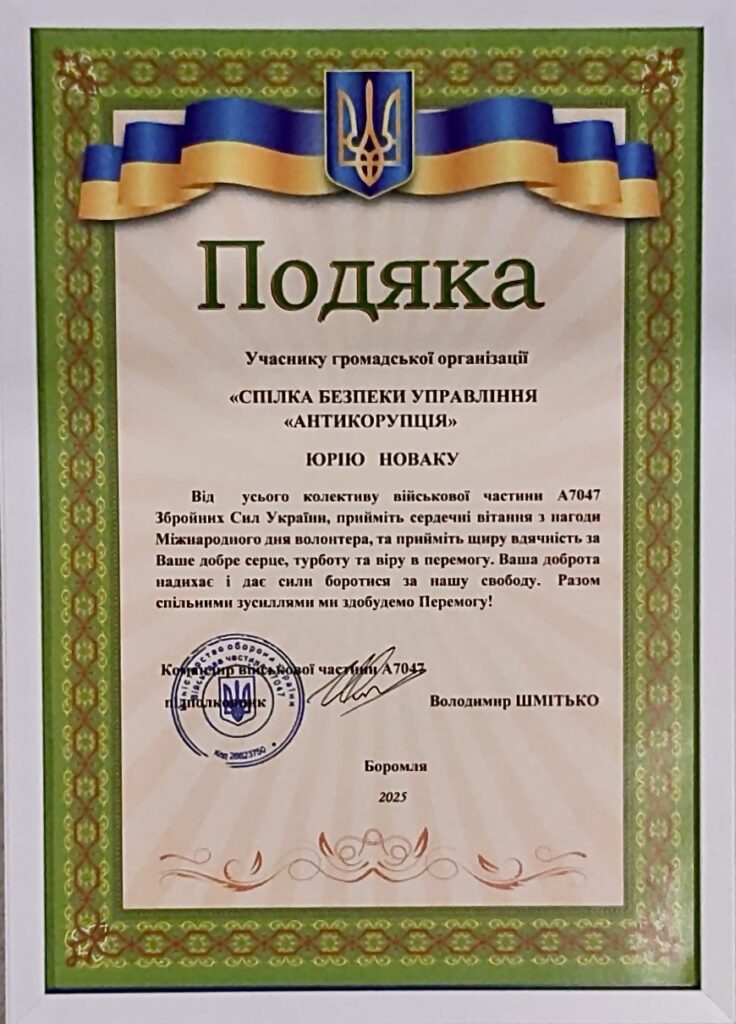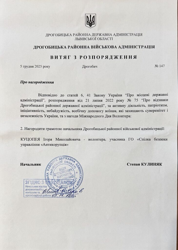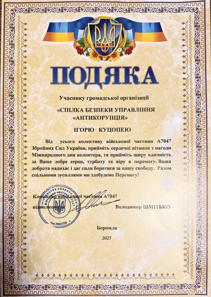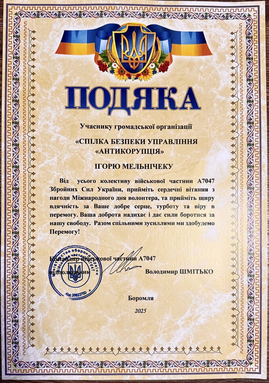 На цій сторінці ви можете ознайомитися з деякими подяками, грамотами й нагородами, отриманими нашою Організацією, її членами та волонтерами: